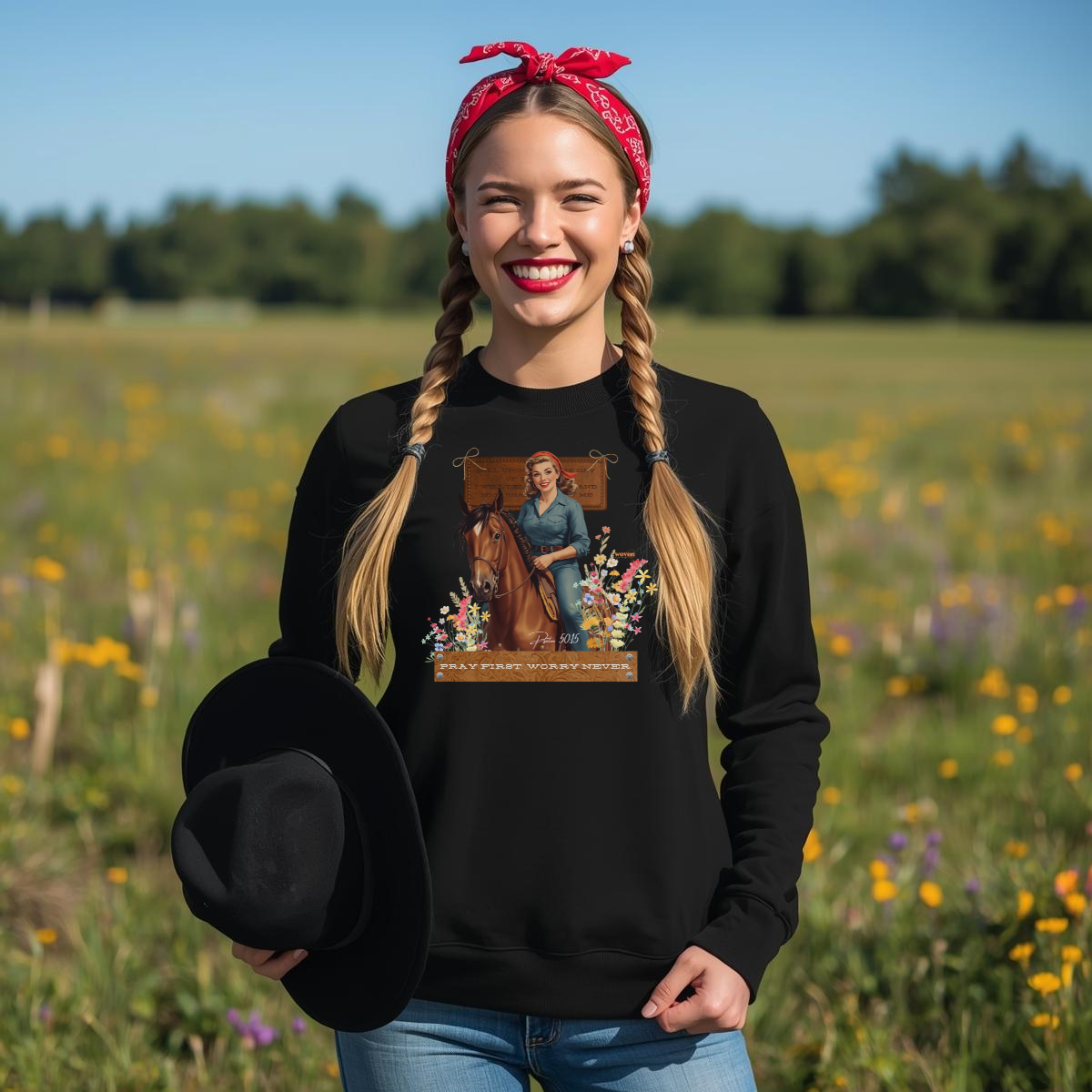 Charge boldly through life with the Lennie’s Cowgal Ruckus Cozy Crew! Inspired by Psalm 50:15, this hoodie is a reminder that no matter where life leads, calling on the Lord brings strength, guidance, and peace. Cozy, confident, and full of personality, it’s perfect for women who want to embrace adventure while keeping faith at the forefront.