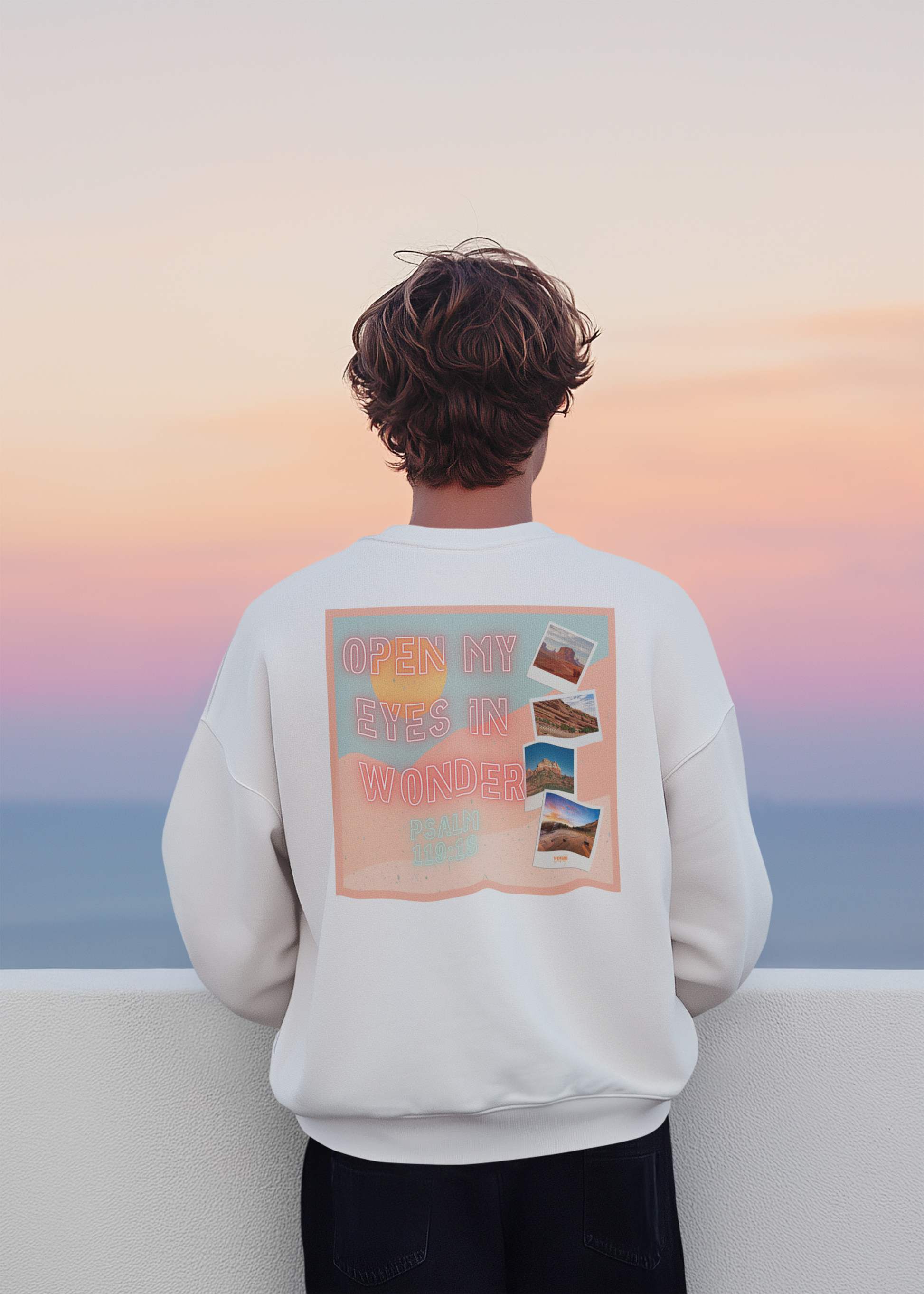 Bathed in canyon light and endless sky, this one’s for the wanderers who find worship in wide-open spaces. The red rock rises like an altar, the sun hits just right, and suddenly, you see — His glory isn’t confined to four walls. “Open My Eyes in Wonder” is a love letter to quiet faith and big horizons, a wearable reminder that revelation can feel a lot like standing barefoot in the desert — grounded, small, and somehow closer to heaven.