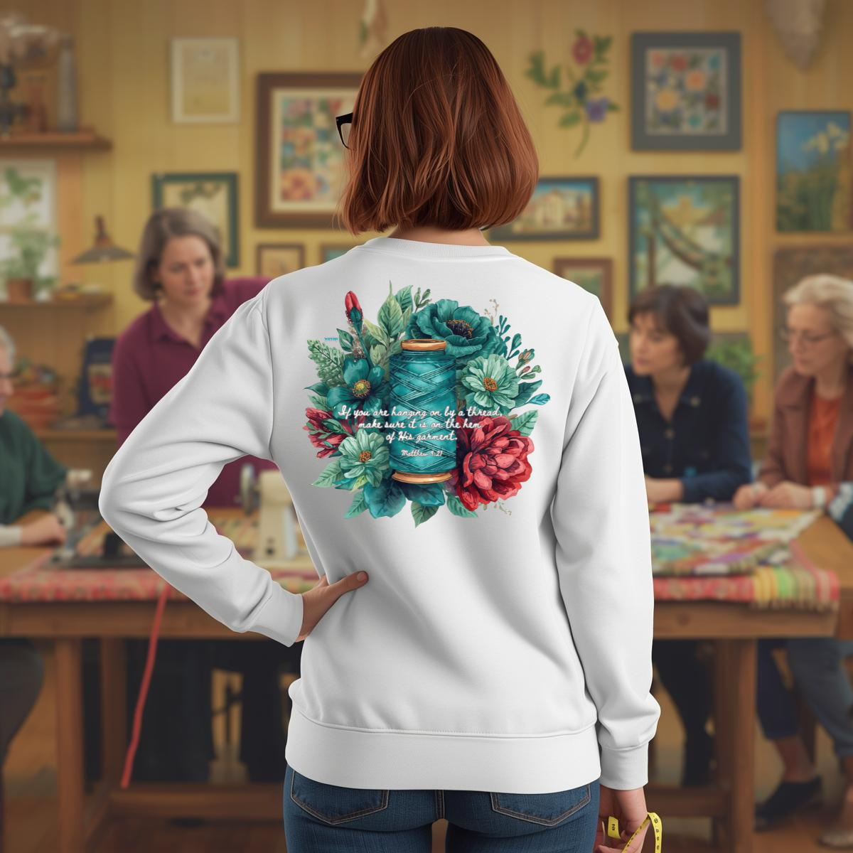 When life feels like it’s hanging by a thread, find your strength in the One who holds it all together. Inspired by the imagery of threads and His sustaining presence, this Weft+Warp Cozy Crew wraps you in comfort, faith, and a quiet reminder: even when you feel fragile, you’re held by the hem of His garment. Cozy, calming, and deeply rooted in hope, it’s for those who trust in God’s unshakable care.
